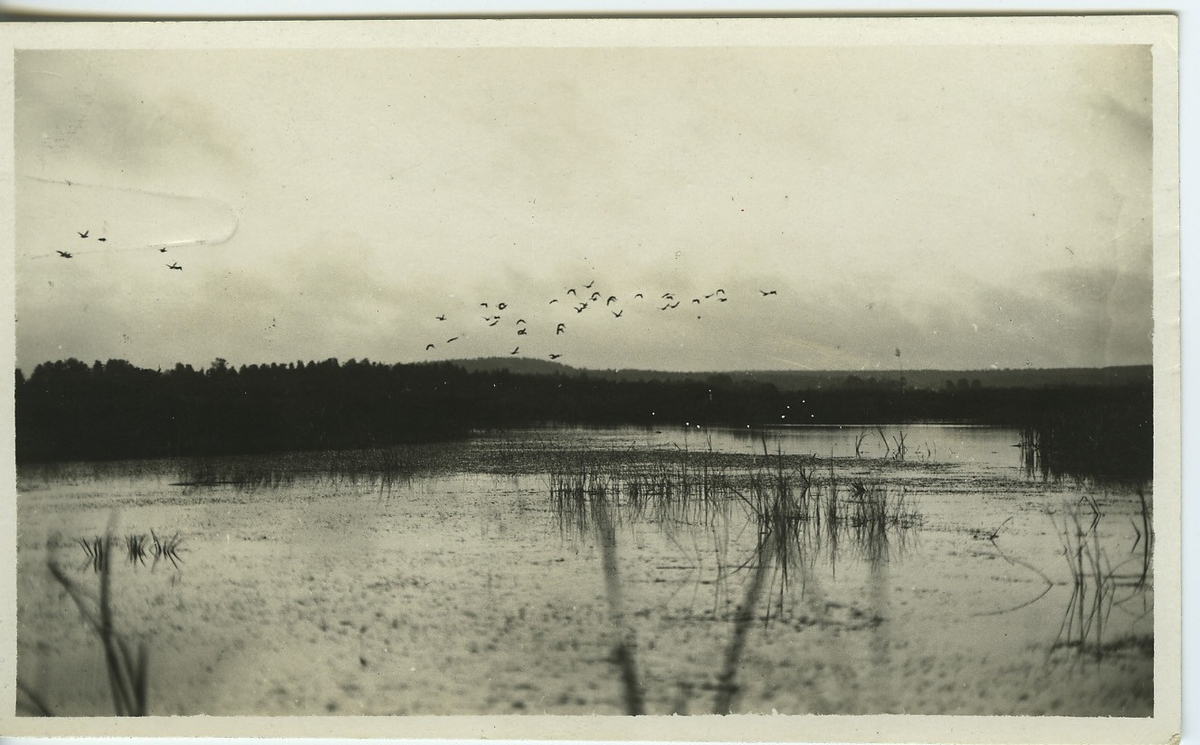'Lättande bläsänder. Vy över sjö med skog i bakgrunden. :: :: Serie fotonr 953-971.'