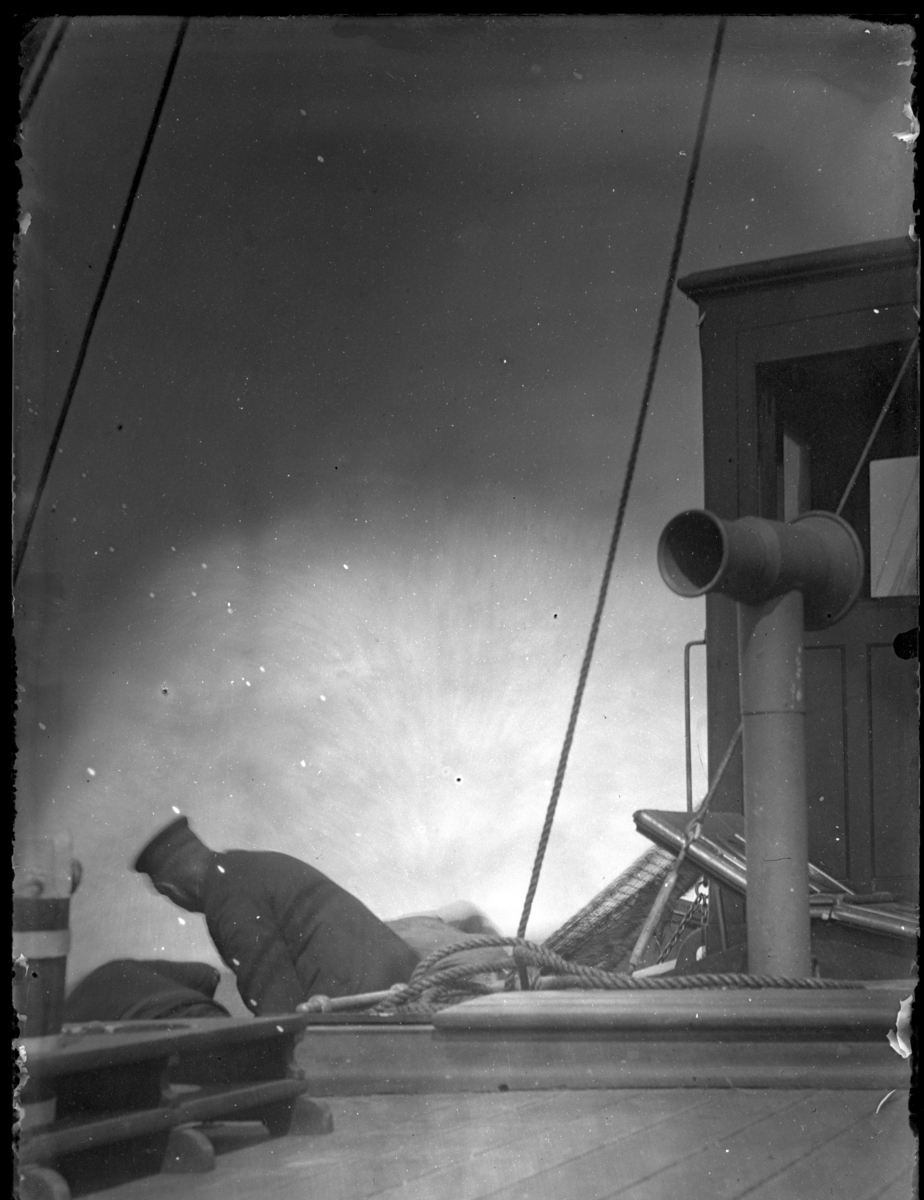 '1 man på båtdäck, iklädd hatt. :: :: :: Ingår i serie med fotonr. 5139:1-36. Fotonr. 5139:1-17 ligger i en ask med texten ''med motiv från (enligt pappasken) Helgoland. För diapositiv.'' Fotonr. 5139:18-27 ligger i en pappask med texten: ''Helgoland (''Augusta'')'' en del för diapositiv. Fotonr. 5139:28-36 ligger i en ask med texten ''Dubbletter från Helgoland. Dessutom diapositiv från Kristineberg och Lysekil.'''