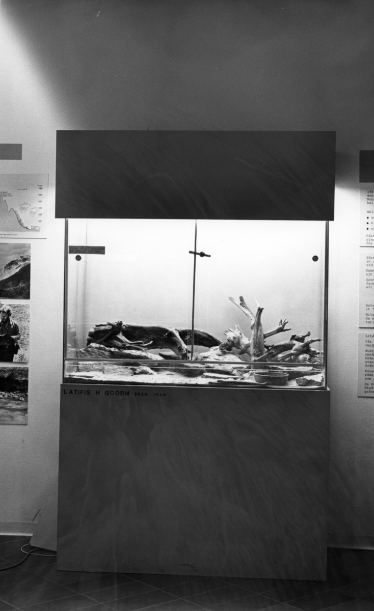 'Foto på Jubileumsutställningen, Göteborgs Naturhistoriska museum 150 år. :: :: Närbild på 2 iranska latifiska huggormar i ett terrarium.'