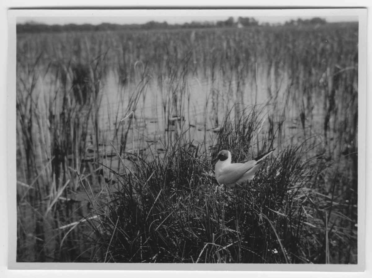 'Skrattmås vid boet. Vy över mosse. Våtmark. :: :: Se serie med fotonr. 1258-1304.'