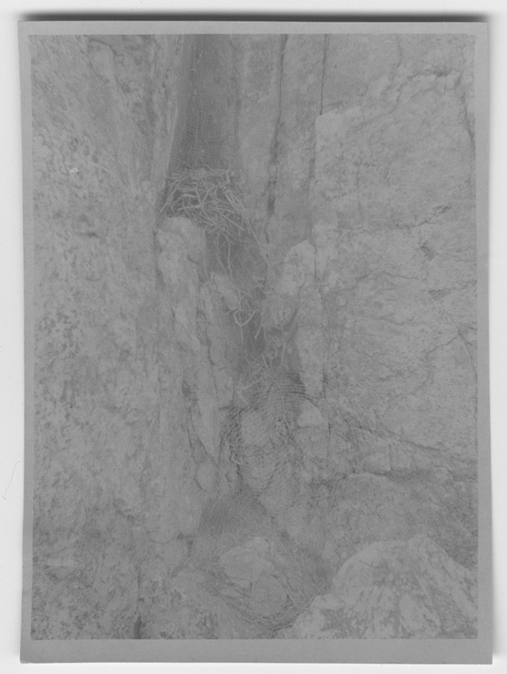 'Bo av tornfalk, iklippa. Se fotonr. 2257 samma bo. :: :: Ingår i serie med fotonr. 2257-2261.'