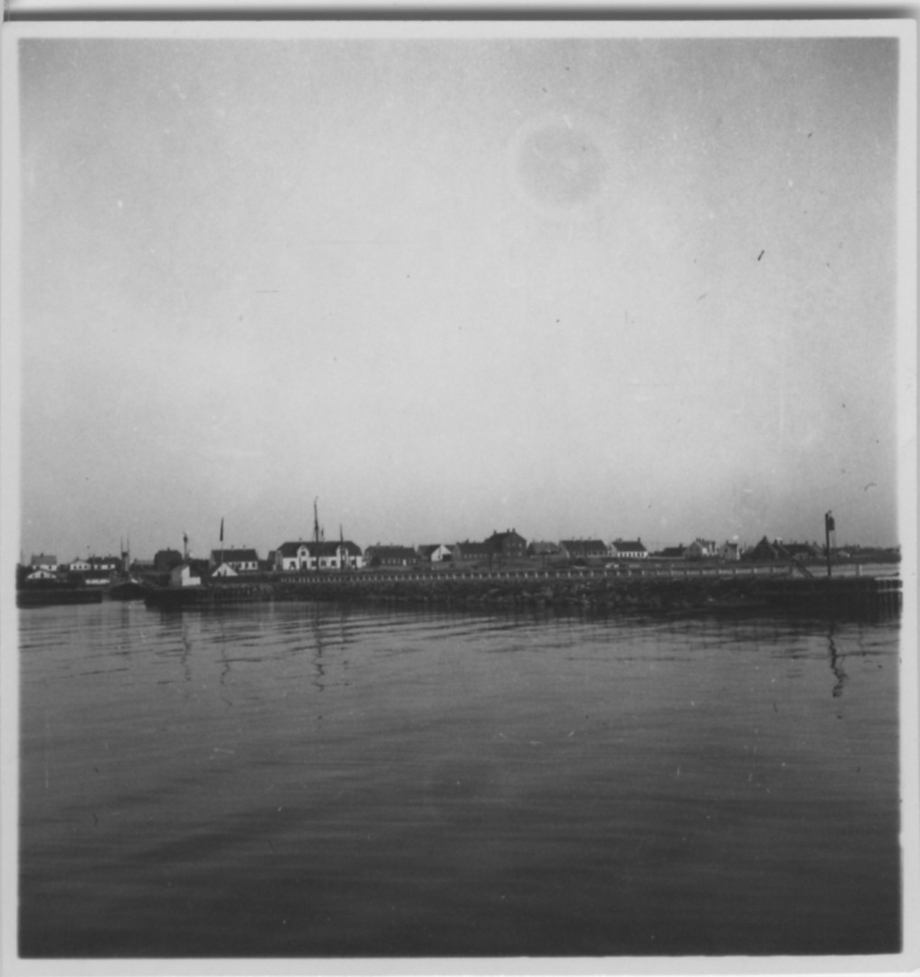 'Biologiska föreningens utfärd till Läsö och Nordre Rönner: :: :: ''Vesterö hamn'', vy in mot land med hus, stenpir i förgrunden.. :: :: Se fotonr. 2674-2734, 2687-2691, 2692-2711, 2714-2734, 2843-2863 och 2975 från samma utfärd.'