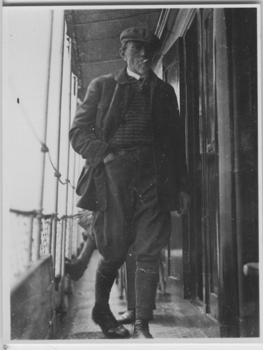 'Biologiska föreningens utfärd till Läsö och Nordre Rönner: :: :: ''Anders Karnell på ''Bris'' på väg till Läsö'', stående på båtens däck. :: :: Se fotonr. 2674-2734, 2687-2691, 2692-2711, 2714-2734, 2843-2863 och 2975 från samma utfärd.'