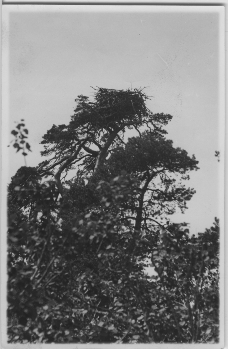 'Biologiska föreningens utfärd till Läckö och Lilla Ekens skärgård: :: :: Fiskgjuse, bo i tall sett på avstånd. :: :: Se fotonr. 3242-3254, 3255, 3256-3259, 3260-3285 samt 3889-3894.'