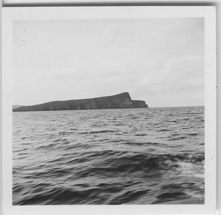 'Från ''Skageraks''-expeditionen till Hebriderna och Shetland: :: :: Vy över del av ön Noss. Fotograferad från avstånd till havs. Berg. :: :: Ingår i serie med fotonr. 4111:1-43.'