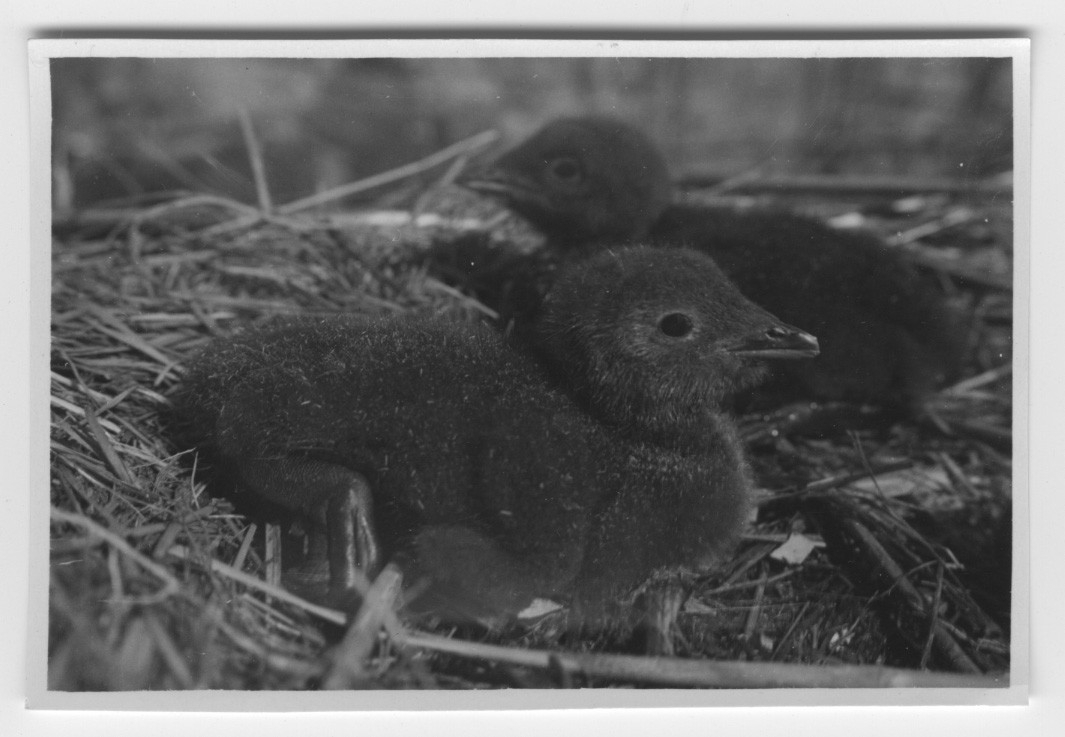 'Storlom, 2 ungar i boet, närbild. :: :: Ingår i serie med fotonr. 3495-3511.'