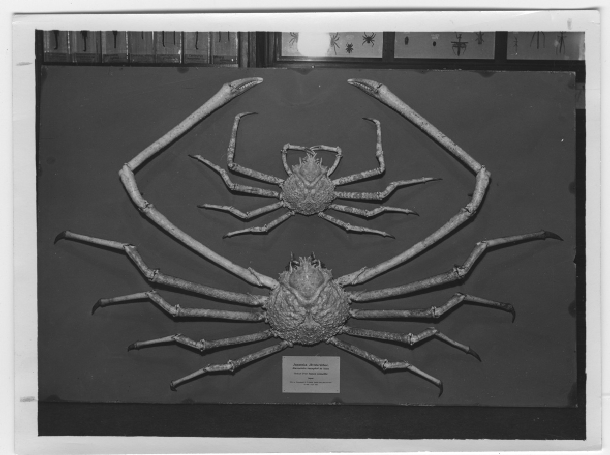 'Japansk jättekrabba. Honan överst, hanen nedanför. :: :: Från utställningsmonter nr 94 (år 2006).'