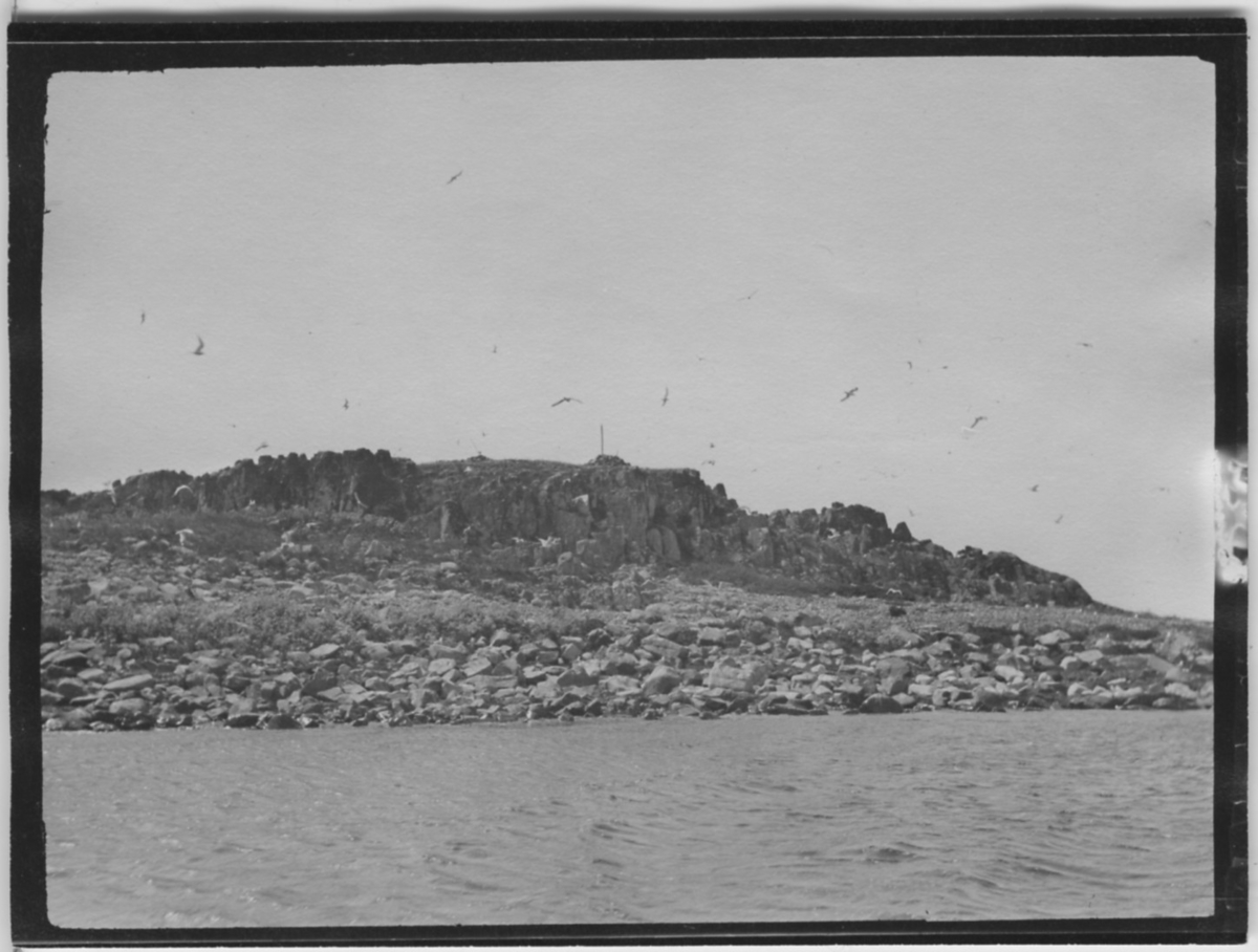 'Biologiska föreningens utfärd till Hallands Väderö: :: :: Vy från havet in mot blockstrand. :: :: Se fotonr. 1464 och 4311:1-58 från samma utfärd.'