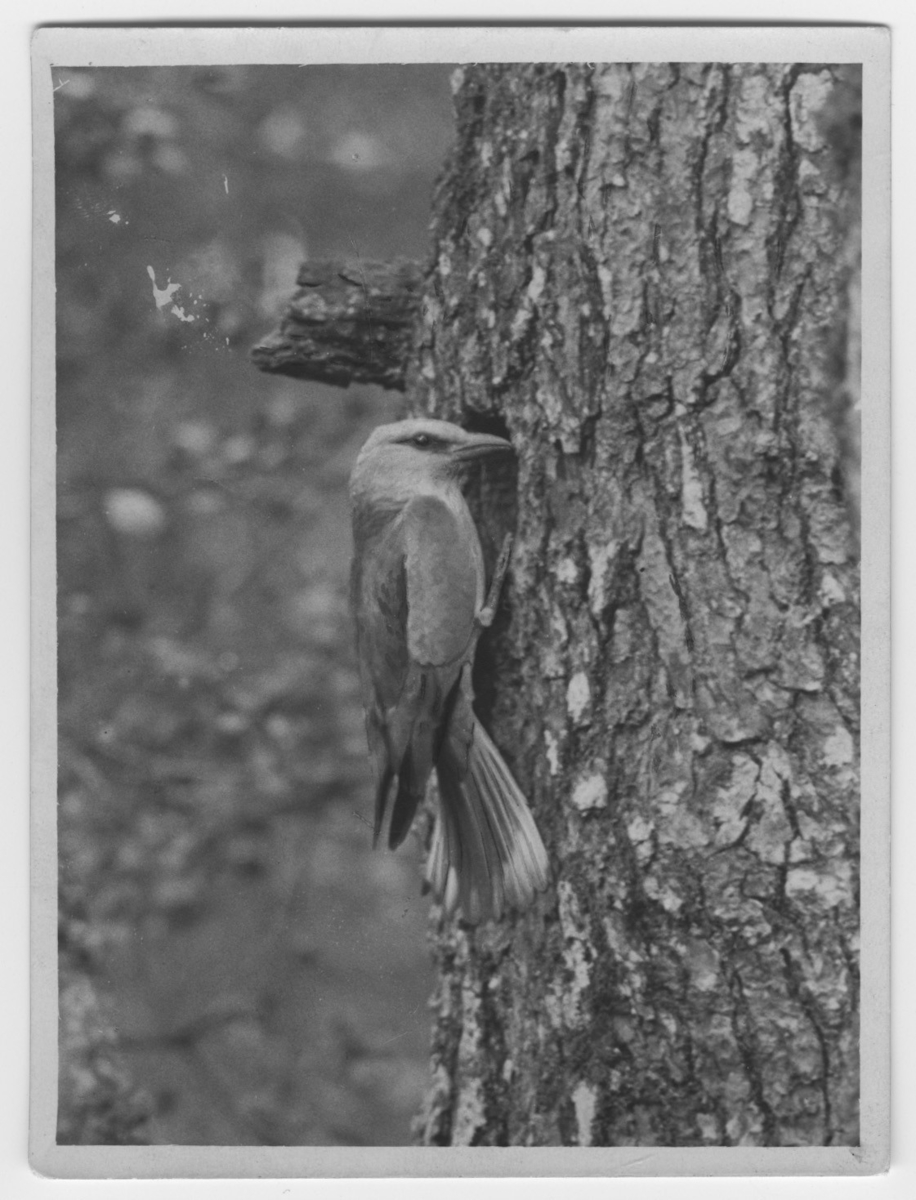 'Blåkråka vid ett hål på en trädstam, närbild. :: :: Ingår i seie med fotonr. 4167-4175.'