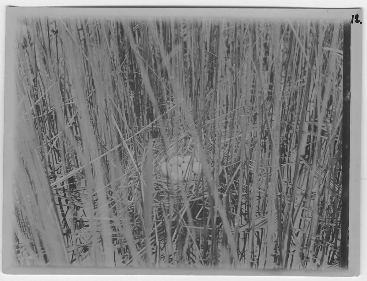 'Sothöna, bo med 8 ägg i närbild, i vassvegetation. :: :: Ingår i serie med fotonr. 450-467.'