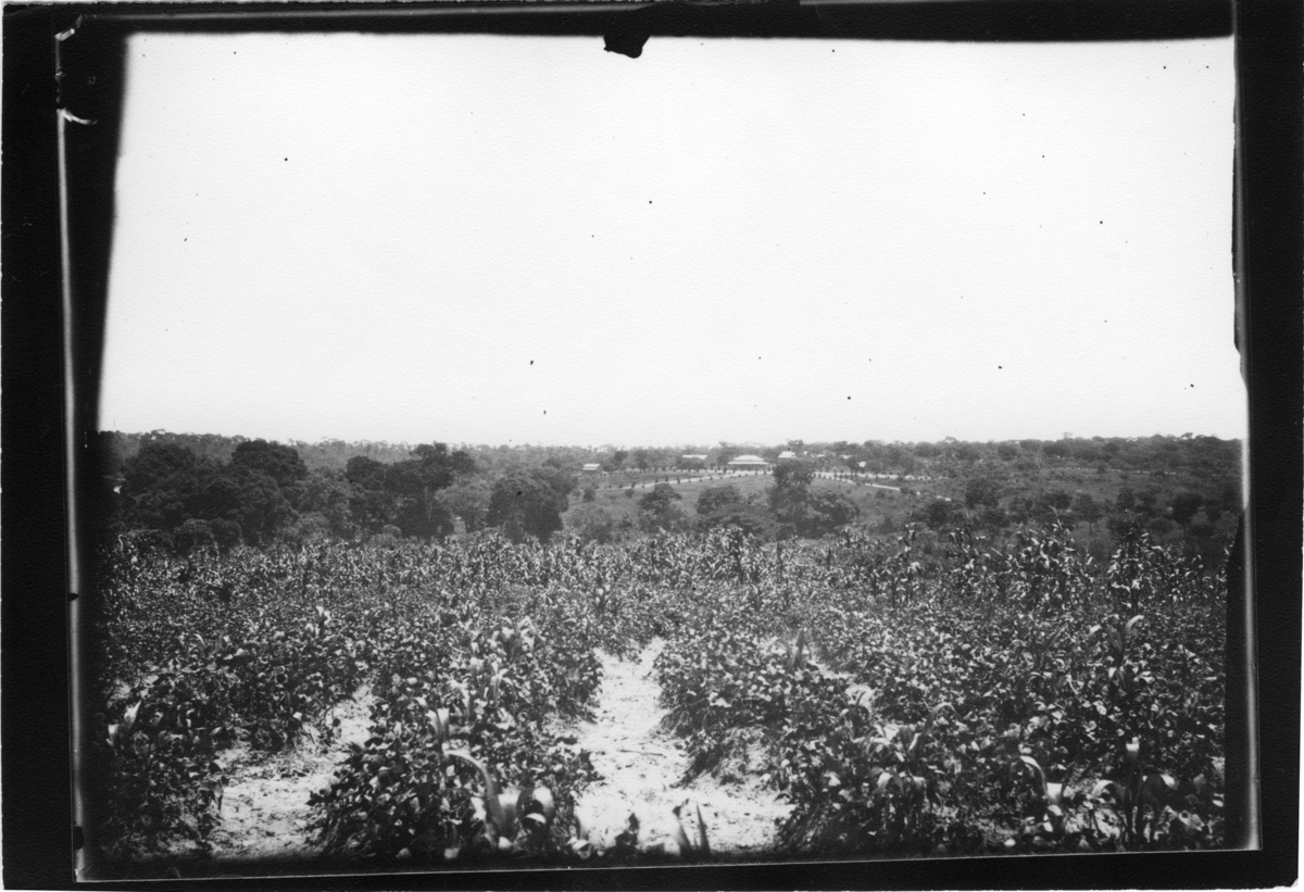 'Diverse fotografier från bl.a. dåvarande Nordrhodesia, nu Zambia, tagna av Konsul Magnus Leijer. :: :: Vy över plateringar, i bakgrunde syns på avstånd en stor byggnad med ett antal mindre omkringliggande byggnader.'