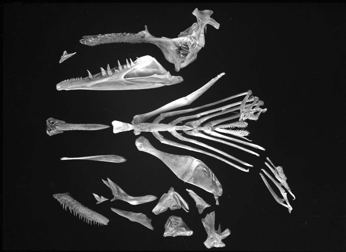'Käkskelett hos gädda. :: :: Ingår i serie med fotonr. 5113:1-18.'