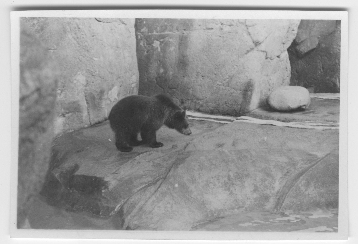 '1 björn stående på stenhäll. :: :: Ingår i serie med fotonr. 4161-4163.'