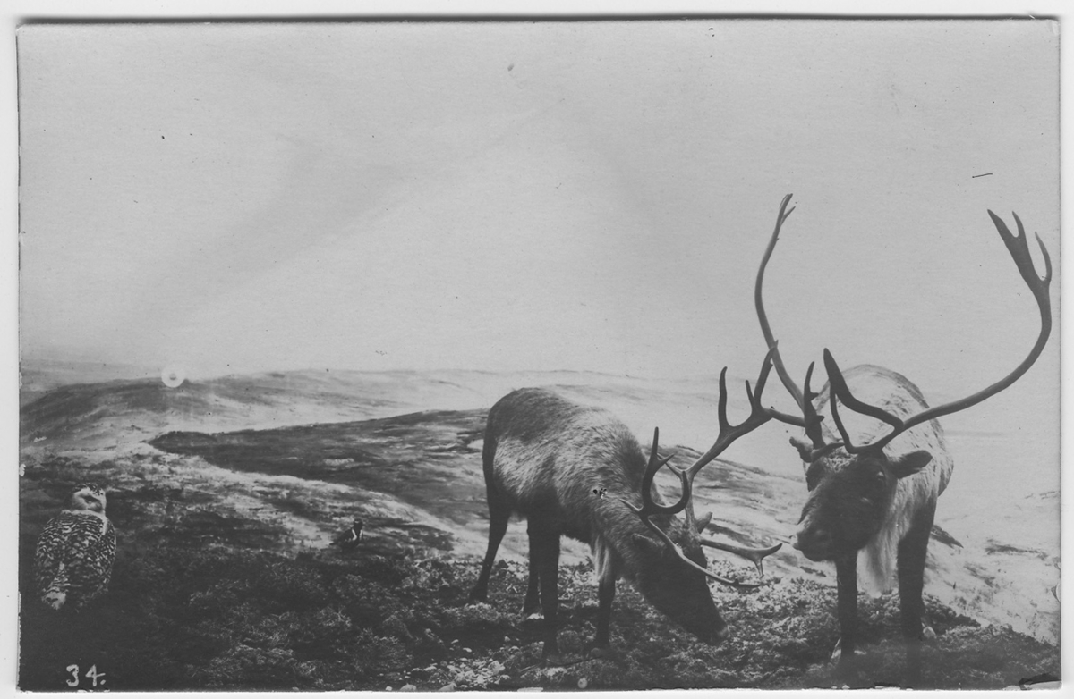 'Från Biologiska museet i Åbo, vinterlandskap med renar och uggla. Montering? :: :: Ingår i serie med fotonr. 648-653.'