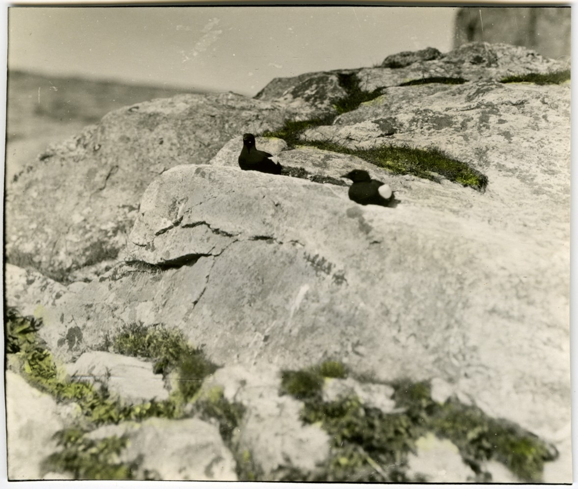 'Vy med 2 st tobisgrisslor liggande på klippa. :: Text till fotot: ''Tejstar vid Kvilholmen fyr.'' :: :: Ingår i fotonr. 6995:1-51, dessa sitter i ett fotoalbum med tillhörande beskrivningar på norska.'