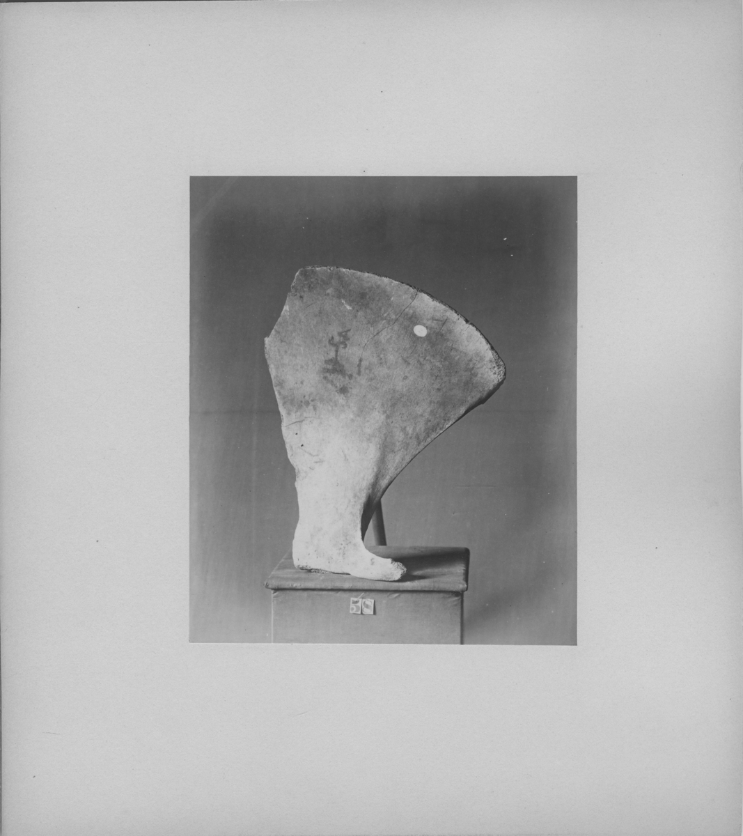 'Bilder på kotor och skelettdelar på podier.''Fotografier till hvaldjur m.m. från Vega-samlingen''.'