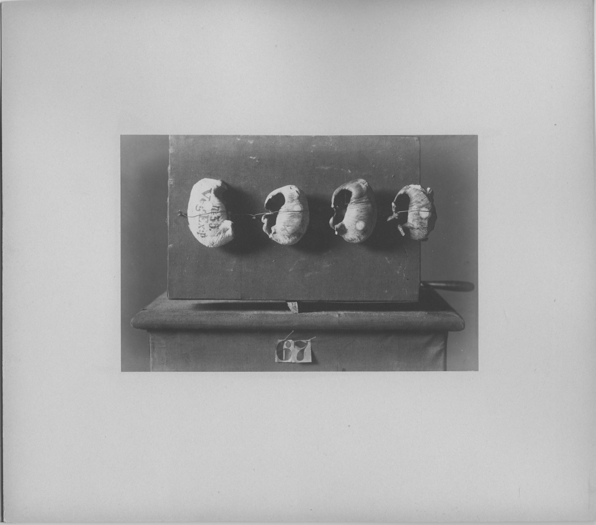 'Bilder på kotor och skelettdelar på podier.''Fotografier till hvaldjur m.m. från Vega-samlingen''. :: :: ''Veg. Exp. nr 35'' står skrivet på ett av föremålen.'