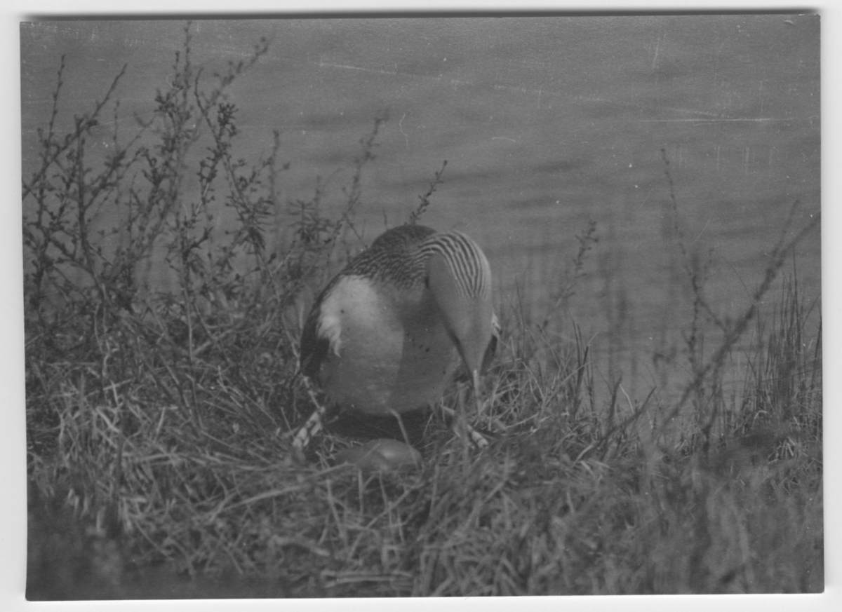 'Illustration till '' Naturens liv i ord och bild'': :: Lom på boet, ägg synligt, vatten i fonden. :: :: Ingår i serie med fotonr. 5638:1-5.'
