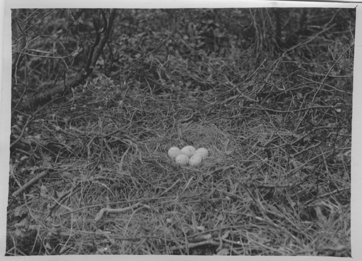 'Illustration till '' Naturens liv i ord och bild'': :: 5 ägg i bo. :: :: Ingår i serie med fotonr. 5638:1-5.'