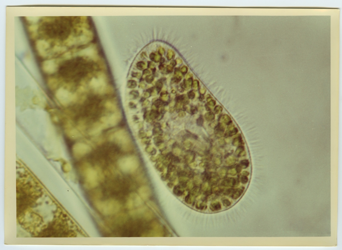 'Mikroskopbilder på amöba: :: Text på baksidan av fotot:'' Reservkopia. Deckarts färgkopia. Paramaecium?'' :: :: Ingår i serie med fotonr. 5653:1-16.'