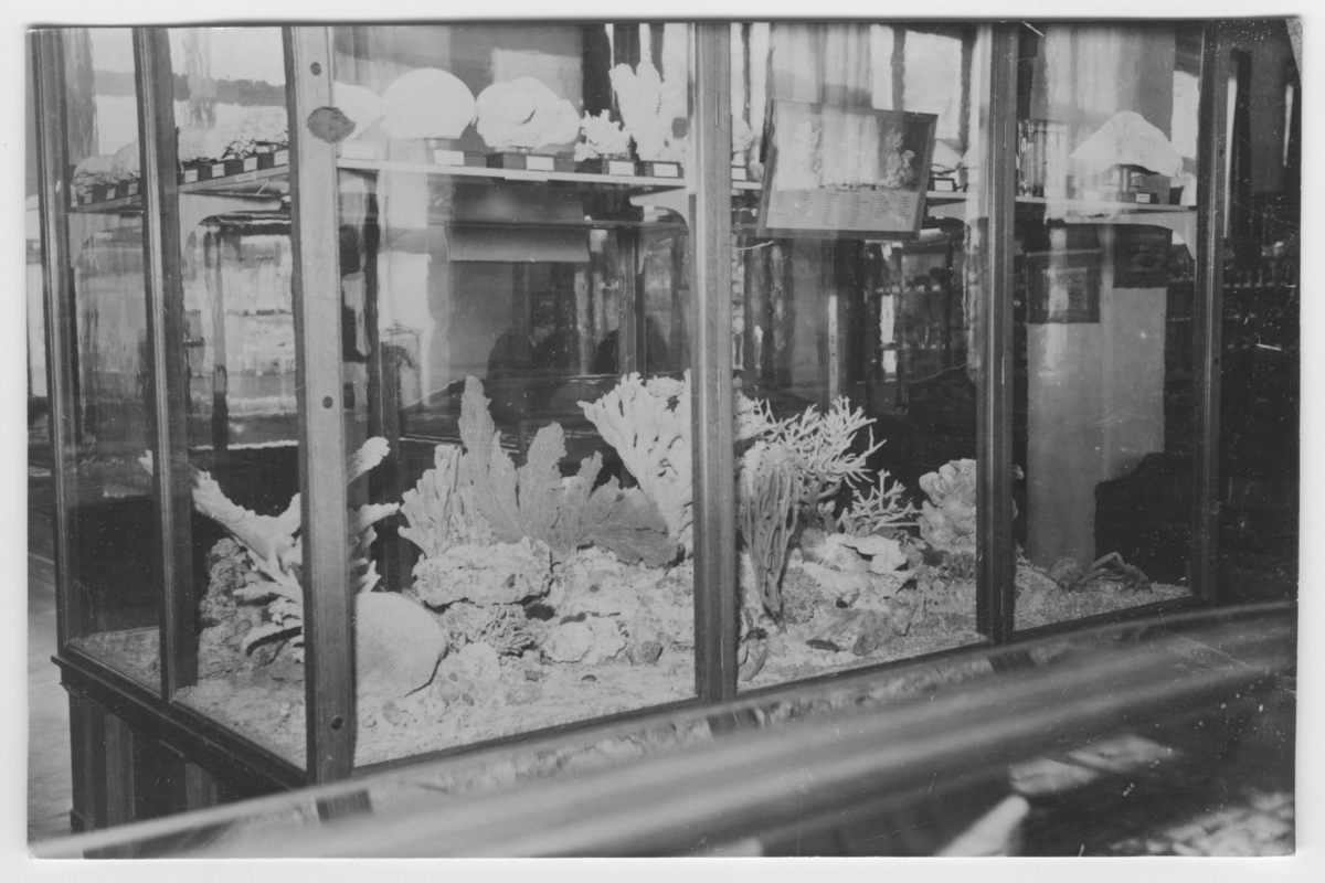'Glasmonter med diverse koraller. :: :: Ingår i serie med fototnr. 5680:1-23.'