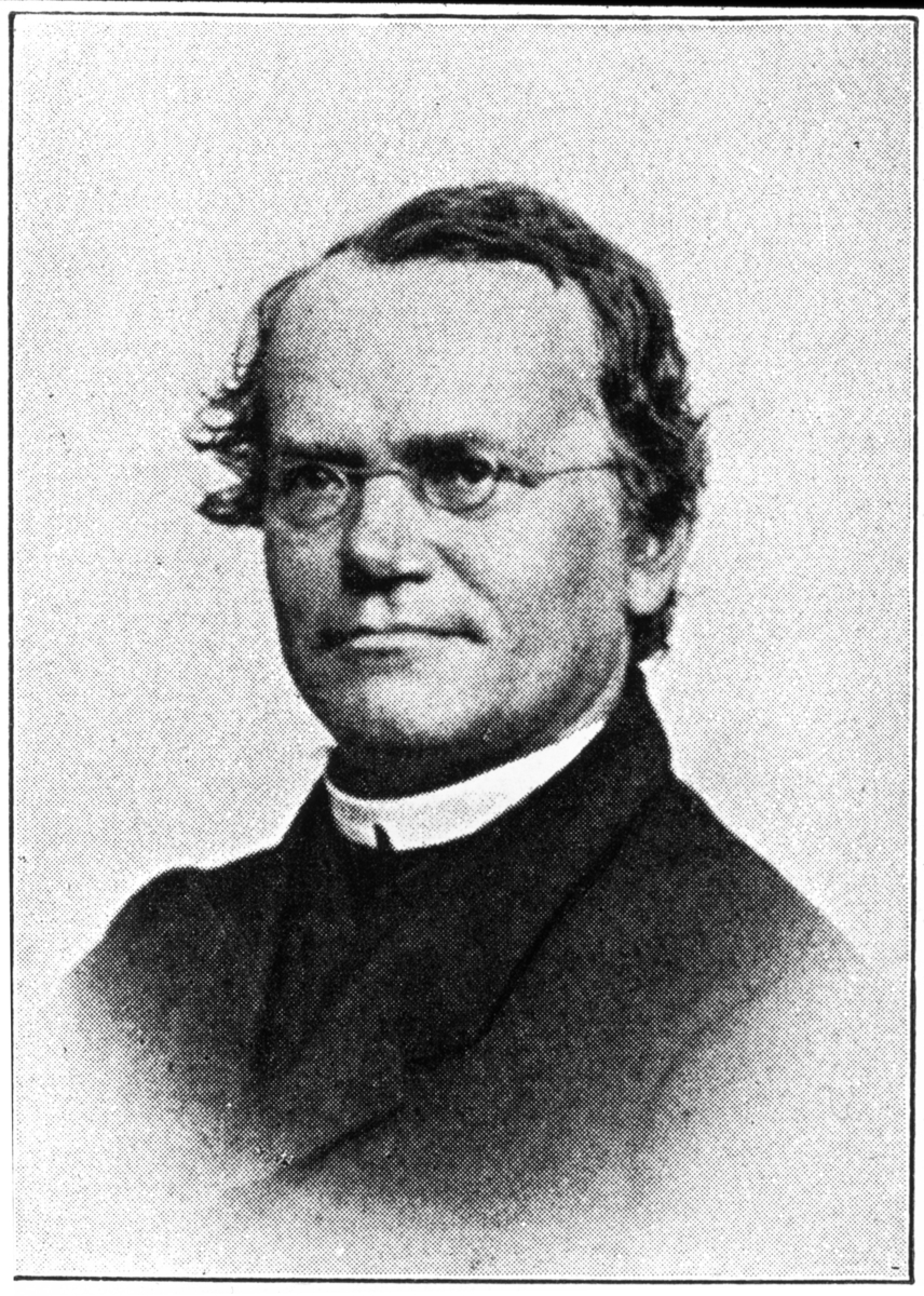 'Porträtt med bildtext: ''Abb. 3, Das Professorenbild. (Aus Das Kuhländchen.'' Porträtt av Gregor Mendel. :: :: Ingår i serie med fotonr. 5324:1-45 med repro från böcker eller publikationer. Dessa tillhör bilder som Leonard Axel Jägerskiöld använt i sina föreläsningar.'