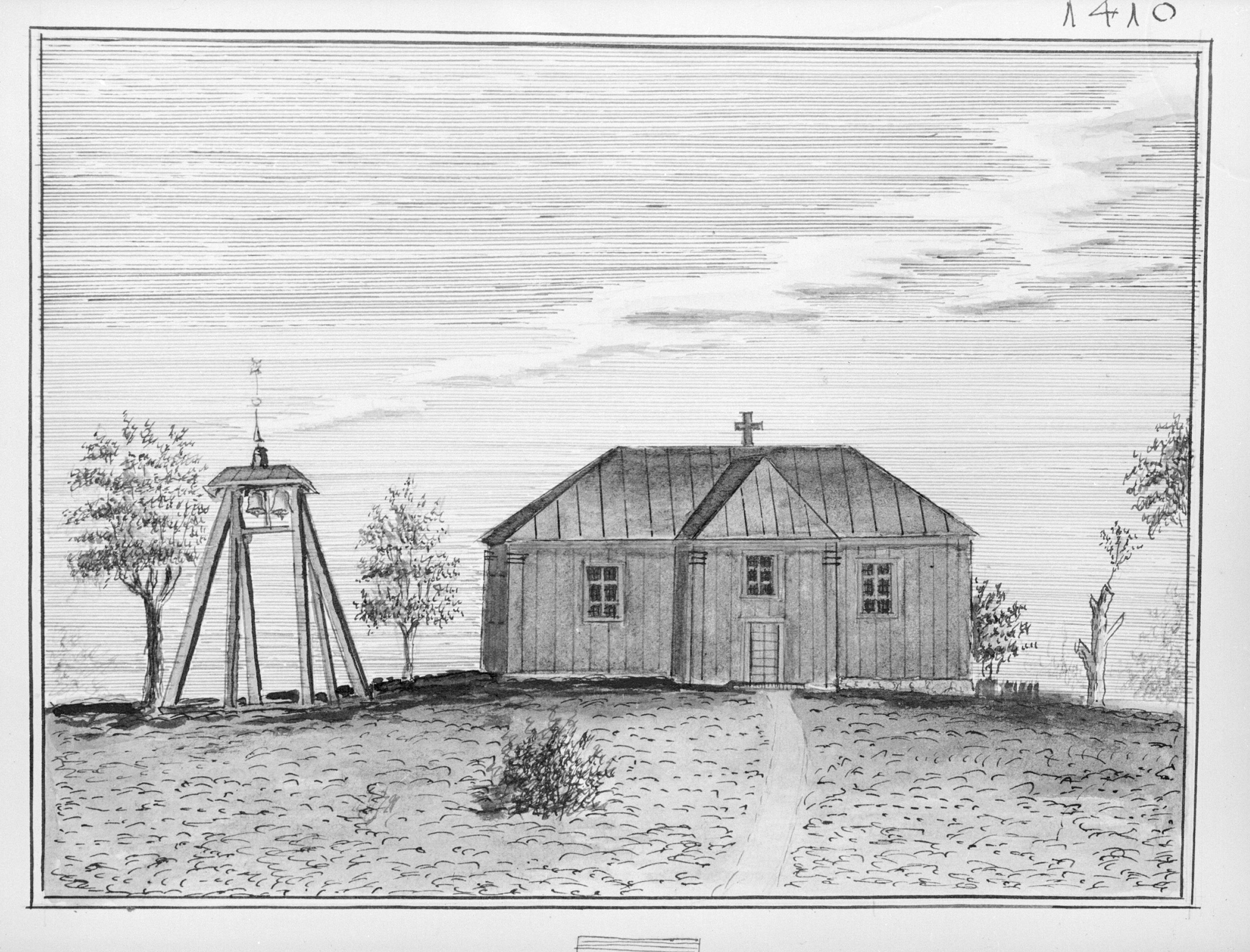 Kyrkan mot söder, teckning, ur Irfors, Uplandica sacra II.