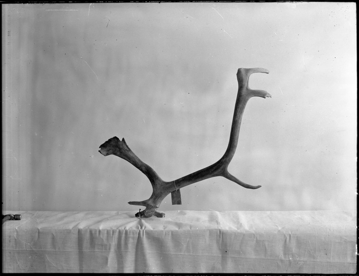Ett renhorn, uppmuddrat ur Göta älv, strx utanför Lindholmens verkstads stora lyftkran. Fynddatum: 1877-08-16.