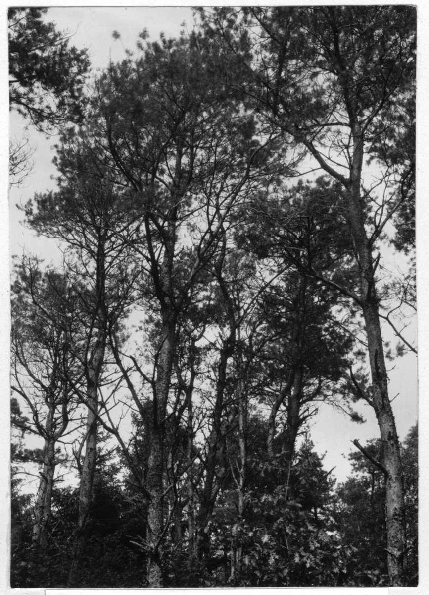 'Bildtext: ''Bild 138. Tallat efter sydeuropeiskt frö.'' Närbild på trädkronor hos tall. :: :: Fotonr. 7046:275-292 indelade som ''Kulturskogsbestånd i Göteborgs län och Bohus län''. Ingår i serie med fotonr. 7046:1-383, 7047:1-33 och 7048:1-67 med bilder från Länsjägmästare John Lindners bildarkiv.'