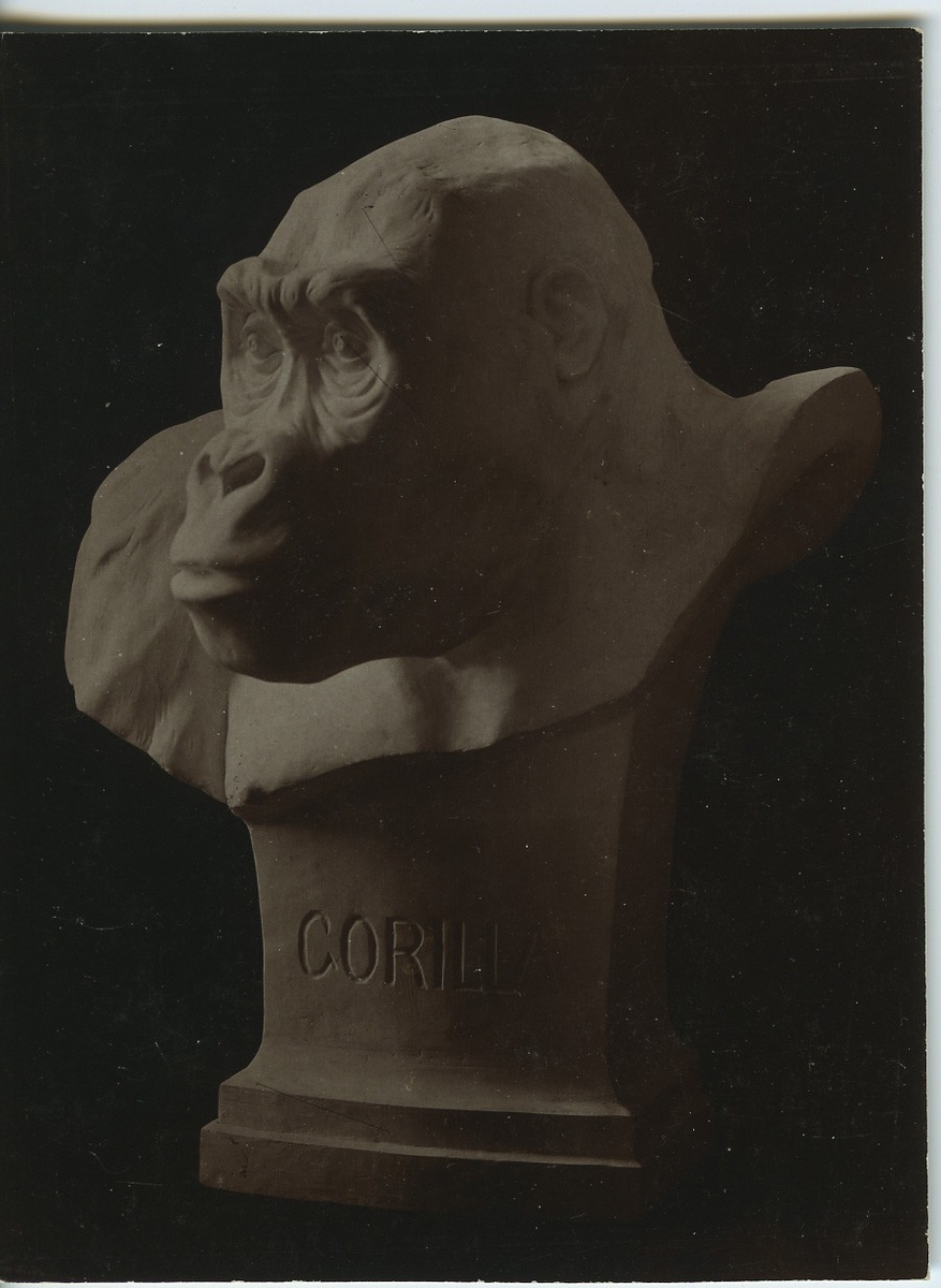 'Gorilla. Skulptur av Bildhauer Herman Ter Meer, Leipzig. Höjd 63 cm. :: :: Ingår i serie med fotonr. 1015-1020.'