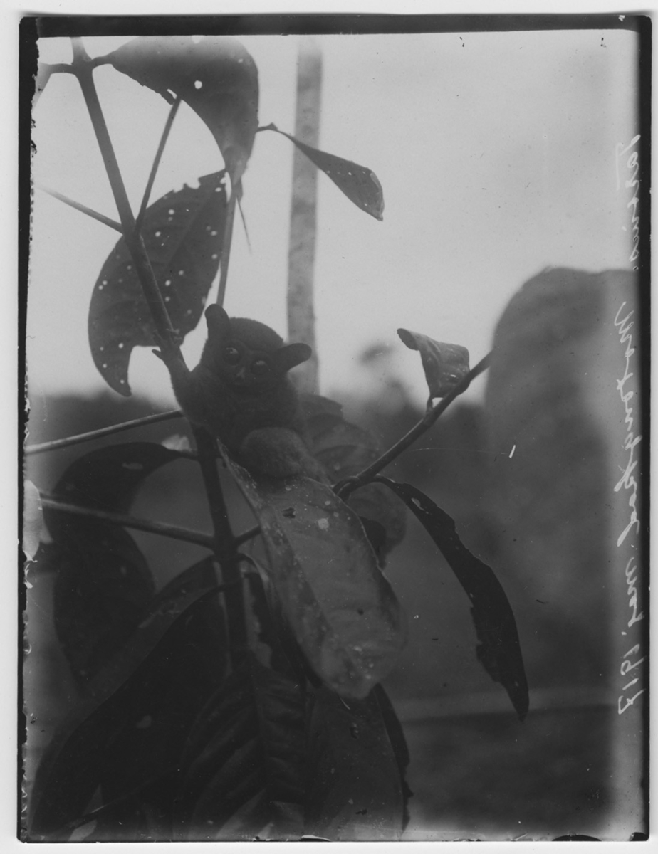 'Spökdjur, sittnade på ett blad. Se fotonr. 5130:4, samma motiv. :: :: Spegelvänd text längs höger kant. Ingår i serie med fotonr. 1149-1154.'