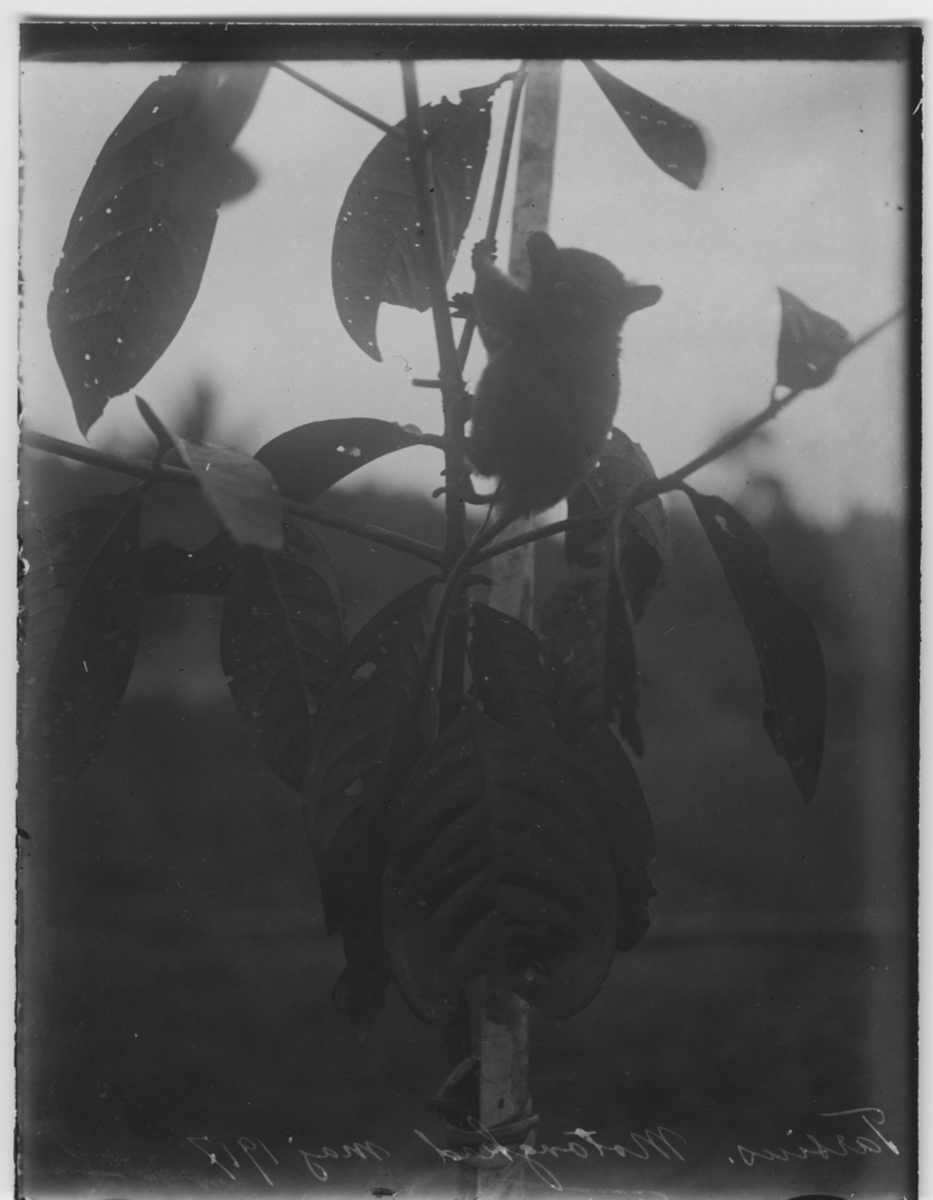 'Spökdjur, i gren. Se fotonr. 5130:1, samma motiv. :: :: Spegelvänd text längs nedre kanten. Ingår i serie med fotonr. 1149-1154.'