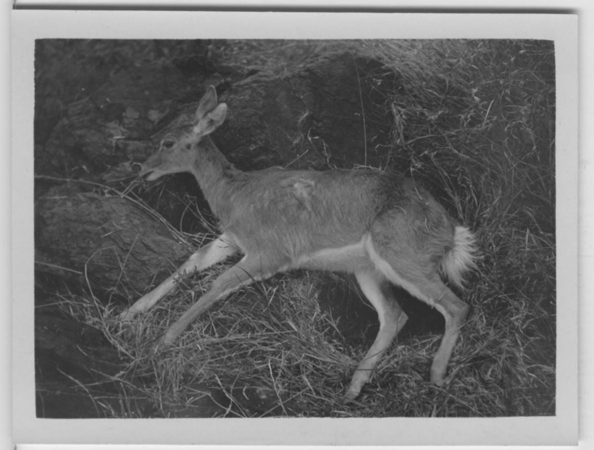 'Redbuck, skjuten, liggande på marken. :: :: Serie fotonr 1434-1449'