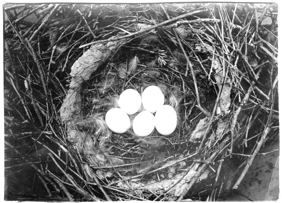'Hornuggla, bo med 5 ägg, närbild. :: :: Ingår i serie med fotonr. 1517-1529.'