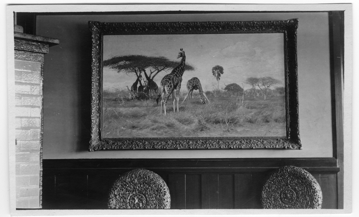 'Nr 9) En flock ''Giraffer'' avfotografering av Willy Kuhnerts originaltavla 1,53x0,92 m. :: :: Ingår i serie med fotonr. 1564-1575.'