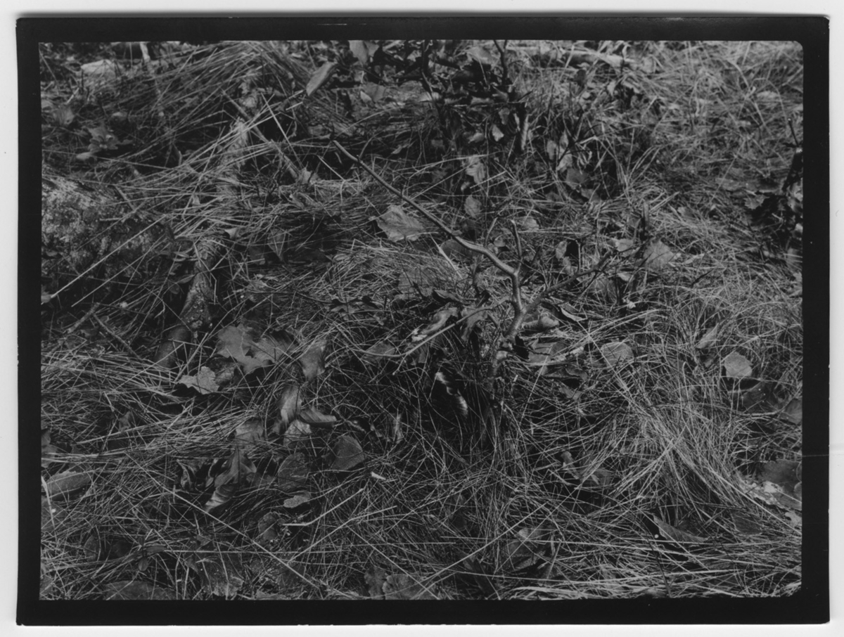 'Närbild av bokplanta. Text på baksidan: ''Bokplanta med skott och kvistar avbitna av hare.'' :: :: Ingår i serie med fotonr. 2347-2399.'