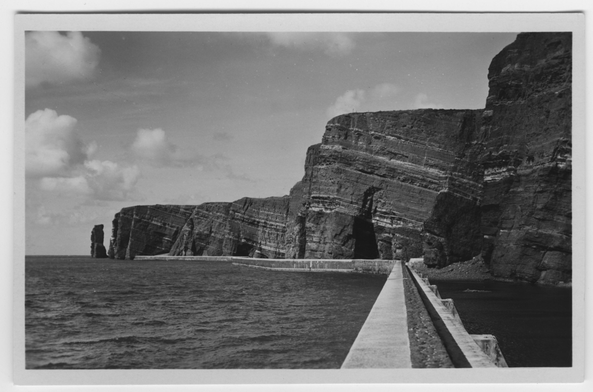 'Västkusten med skyddsmur nedanför klippa. :: :: Ingår i serie med fotonr. 2454-2461.'