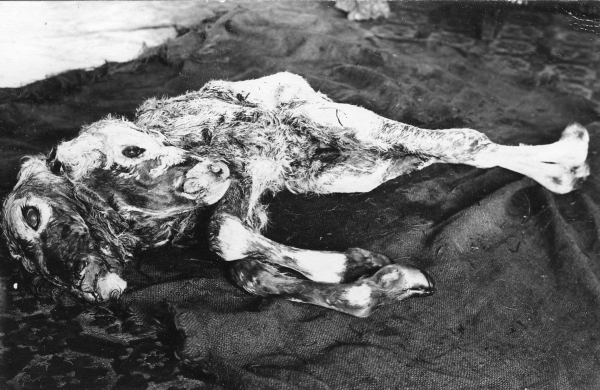 Kalv med 2 huvuden och 5 ben, varav ett dolt under huden.