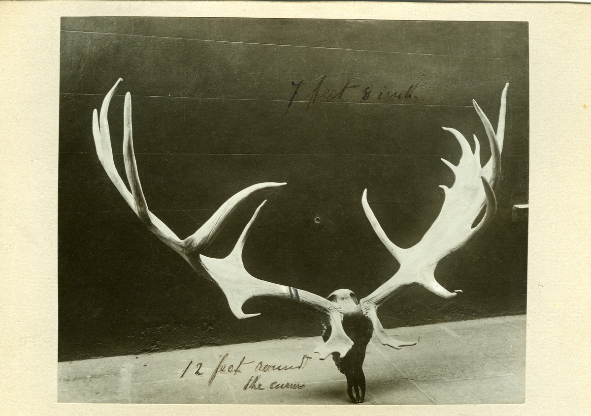 'Hjorthorn med kranium. Anteckning om hornens mått finns på fotot. :: :: Se fotonr. 265-268.'