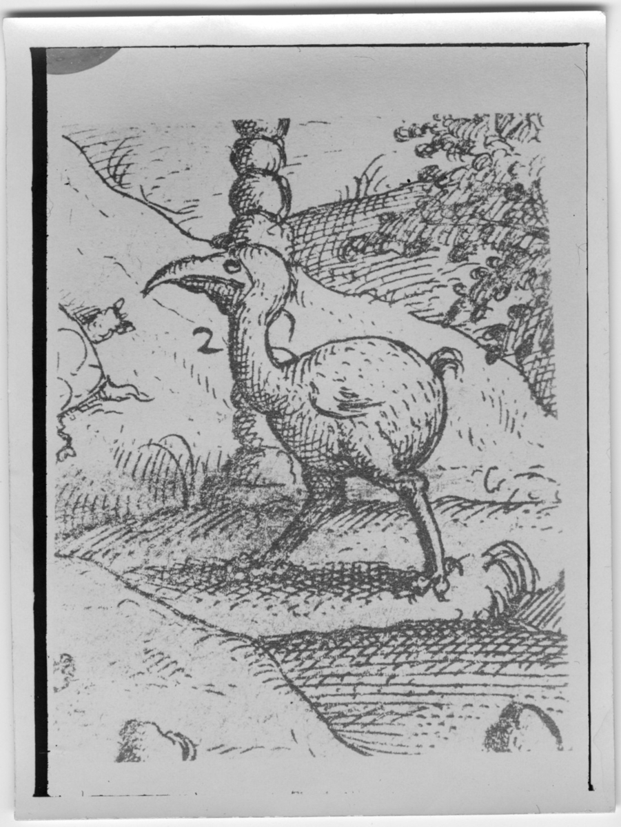 'Von Nechs bild av dront. :: :: Ingår i serie med fotonr. 2984-3010, foton och teckningar på dront och garfågel bl.a.'