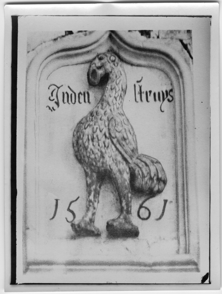 'Bildtext: ''Reliefen på det så kallade skottska huset i staden Vere.'' :: :: :: Ingår i serie med fotonr. 2984-3010, foton och teckningar på dront och garfågel bl.a.'