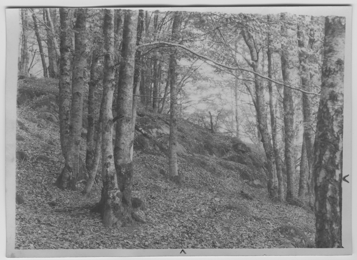 'Häckplats för tjäder. Vy med bl.a. björkträd i bergsluttning. :: :: Se även fotonr. 3070.'