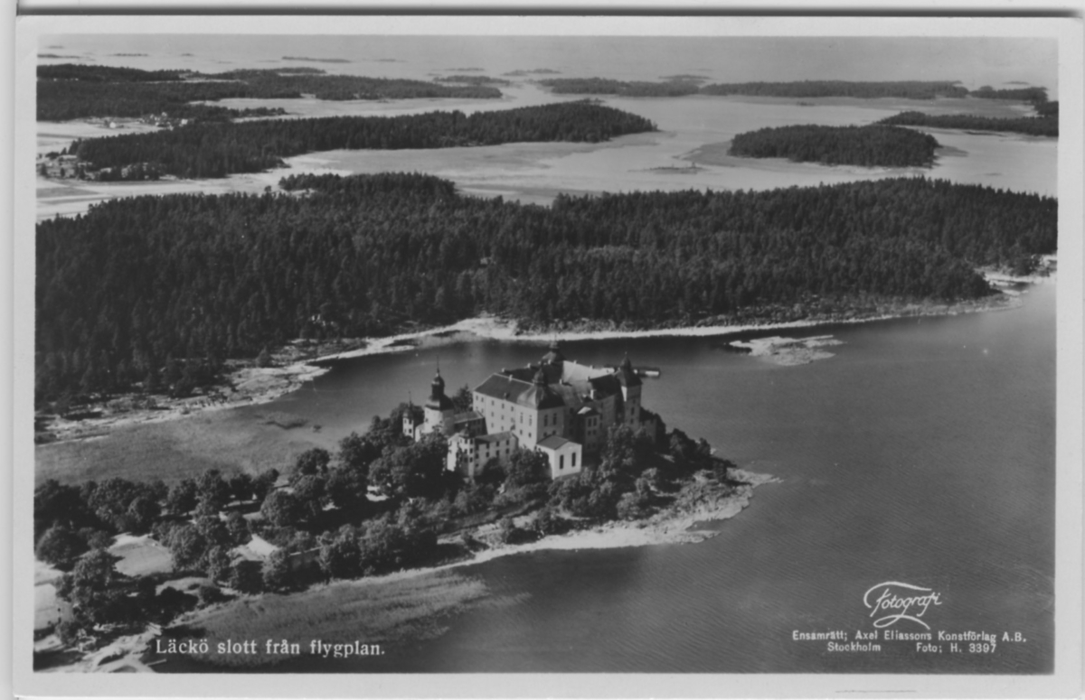 'Biologiska föreningens utfärd till Läckö och Ekens skärgård: :: :: Läckö slott flygbild, ''Läckö slott från flygplan.'' :: :: Se fotonr. 3242-3254, 3255, 3256-3259, 3260-3285 samt 3889-3894.'