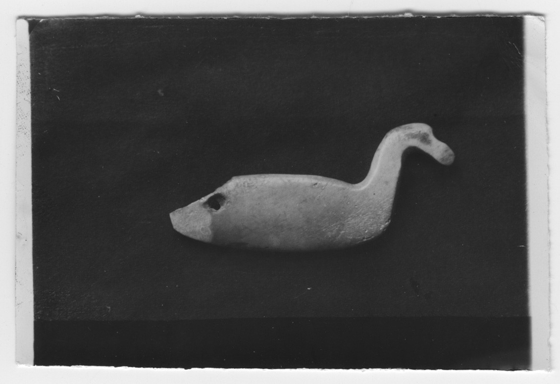 'Hängsmycke av ben föreställande en garfågel. :: Nr. 10815'