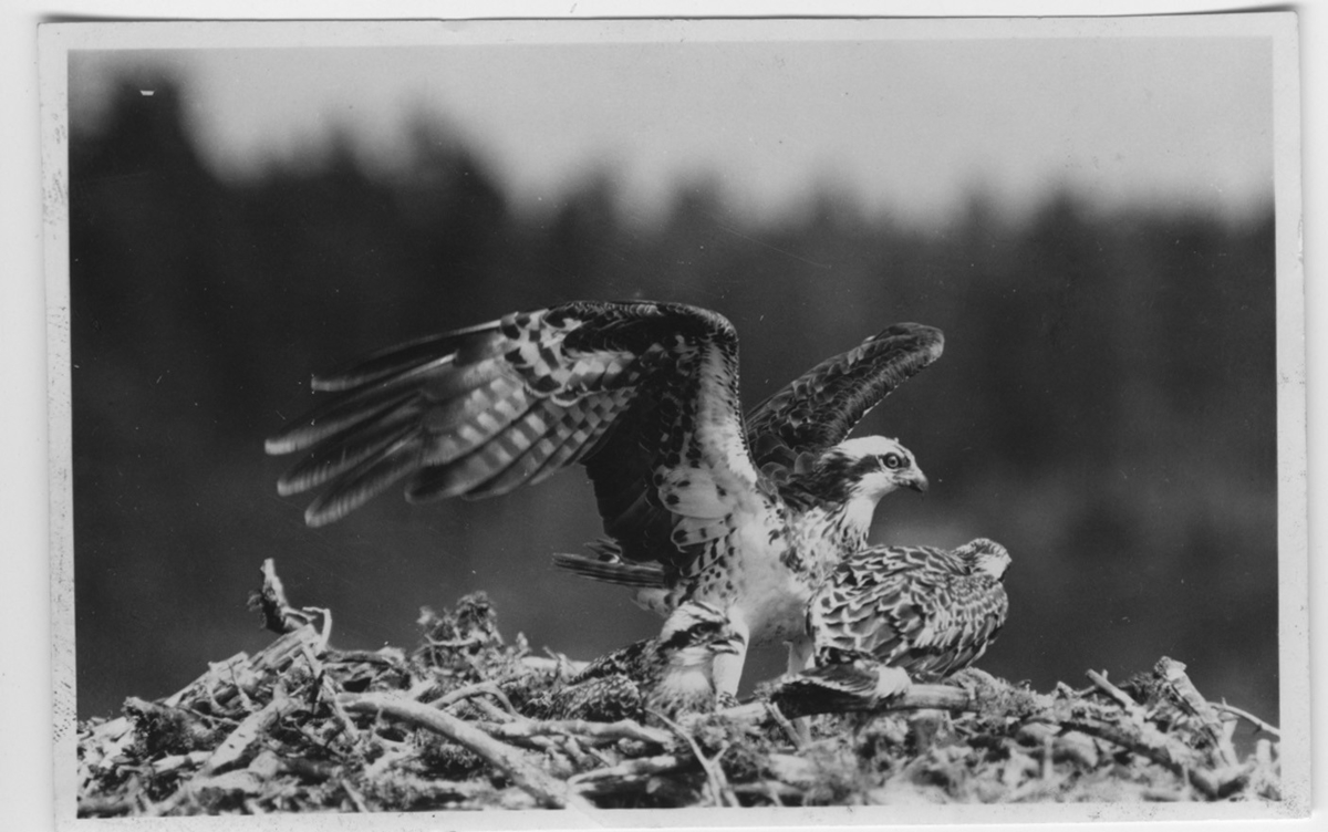 '1 fiskgjuse med 2 ungar på boet. Närbild. :: :: Se fotonr. 3409-3414.'