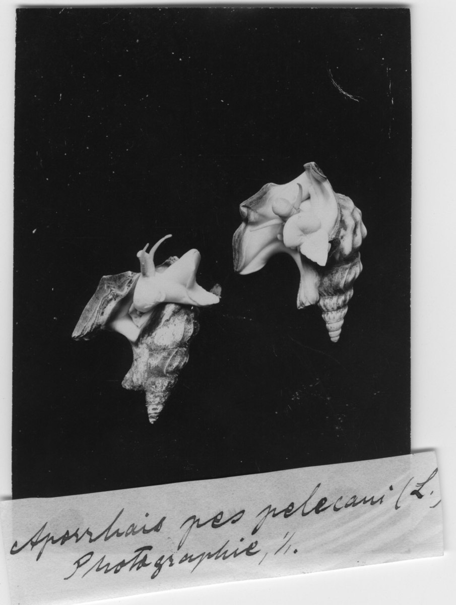 Pelikanfotsnäcka, 2 st, öppningen synlig.