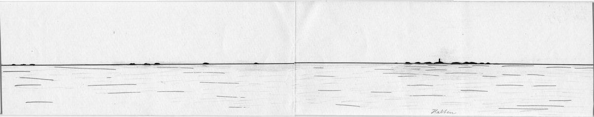 'Mycket enkel siluett av öarna vid Halten. Teckning av Carl Dons. :: :: Ingår i serie med fotonr. 3694-3719 se även fotonr. 3679-3693.'