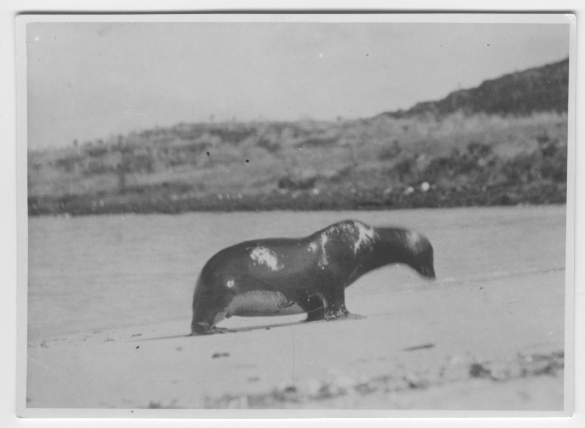 'Ett sjölejon, i helprofil på stranden. :: :: Se serie med fotonr. 3779-3822.'