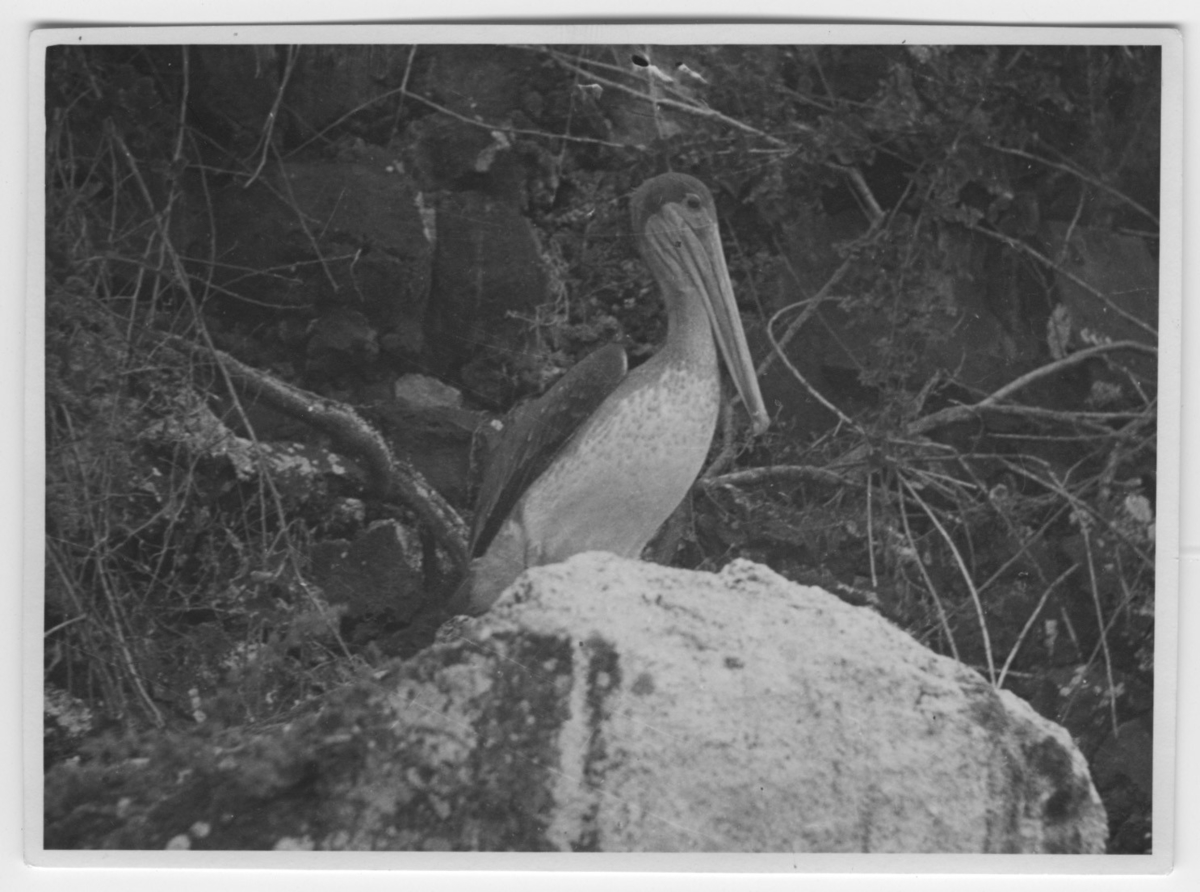 '1 pelikan på sten, närbild. :: :: Se serie med fotonr. 3779-3822.'