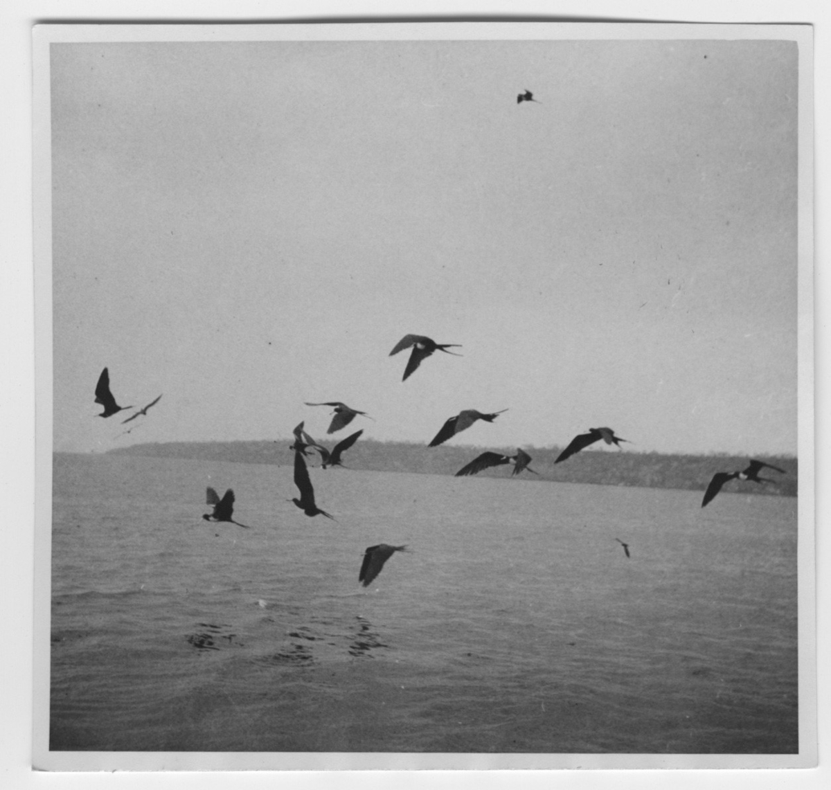 'Fregattfåglar, flygande. :: :: Se serie med fotonr. 3779-3822.'